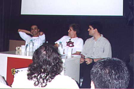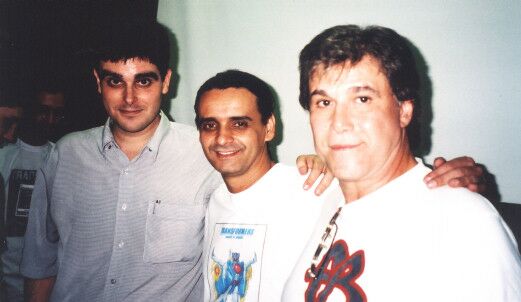 Guilherme Briggs (Optimus Primal de "Beast Machines" e Optimus Prime de "Nova Geração"), Celso Vasconcelos (Optimus Prime de "Transformers") e Romeu D'Angelo (Darkscream de "Nova Geração") dando autógrafos.