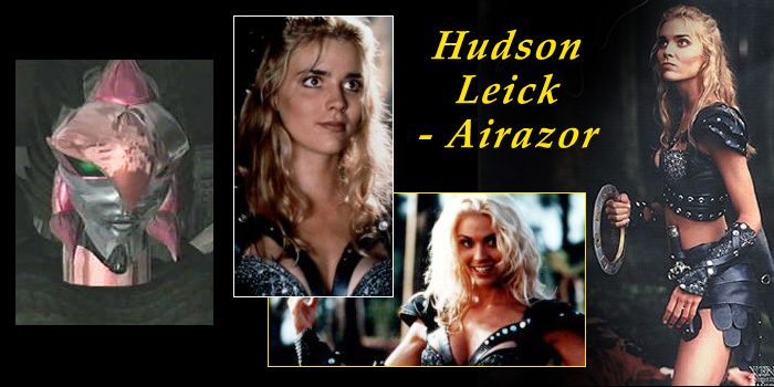 AIRAZOR a nica garota entre os Maximals, com olhar meigo e voz calma, mas isso no a impede de deixar de lado seu toque feminino para lutar, seja ao lado do seu amado Tigatron ou sozinha com seus vos rasantes, causando considerveis estragos ao redor. Nada melhor que aproveitar a doura da carinha de HUDSON LEICK, mas com um pouquinho da experincia da terrvel personagem Calixto em Xena, a princesa guerreira.