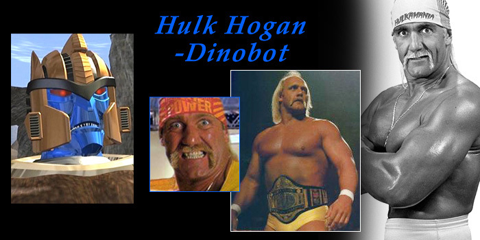 Honra e lutas violentas fazem parte da dieta bsica de DINOBOT. O ex-Predacon e ento guerreiro Maximal um estrategista mais calado e srio e com certeza no deixar de exprimir sua ira se for incomodado com qualquer brincadeirinha. O mais adequado ao podium do boca de liquidificador seria ningum menos que HULK HOGAN, ator e... que coincidncia... um lutador musculoso tambm!... ora, ora, a vida imita a arte?...